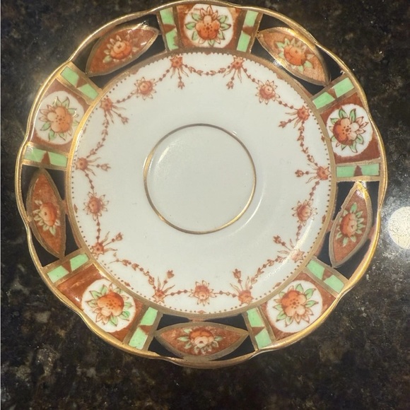 | Product Features | This elegant porcelain saucer features a beautiful floral design in orange and green hues, accented with gold trim. Perfect for adding a touch of sophistication to your dining experience. | ||