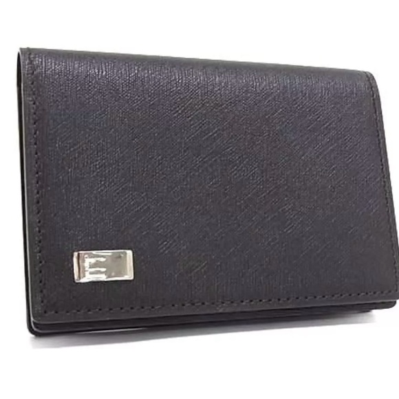 | Product Features | Dunhill Sidecar Business Card Case/Wallet. Sleek black bifold leather wallet featuring a silver accent on front flap. Approximate measurements 4”x3”x1”. New with tags. Comes in original box with velvet wrap. | ||