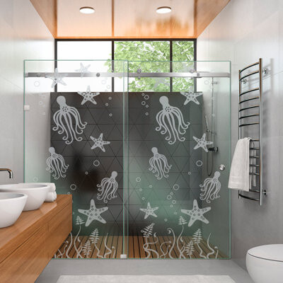| Product Features | Details:Introducing our stunning sliding bathroom door, crafted with premium tempered glass to ensure both safety and elegance in your bathroom space. This completely frameless design offers a sleek, modern aesthetic that seamlessly integrates with any bathroom decor. The door features a beautiful, frosted design, with high quality and durable patterns, ensuring that the design remains pristine and resistant to wear and tear over time. This sliding bathroom door consists of a fixed panel and a sliding panel, providing easy access while maintaining a stylish and functional barrier. The tempered glass construction adds a layer of safety, making it an ideal choice for your bathroom. SCOPE OF DELIVERY ✔ 1 x Frameless Glass Shower Door ✔ 1 x Frameless Glass Fixed Panel Screen ✔ 1x Shower Glass Door Sliding System Hardware Kit ✔ 3x PVC Seal Strips for Frameless Glass Shower Doors PRIVACY LEVEL • Non-private • Semi-private ABOUT THE COLOR OF THE GLASS Note: This door is normally made in float glass, float glass is transparent and lets the light pass through without problems but if you look at it from the edge it has a greenish color. Please Notice: Shower Doors SANDBLASTING WILL BE ON THE EXTERIOR SURFACE. The surface that will have the Sandblasted Art will be to the exterior surface, OUTSIDE of the shower. The inside surface of the shower glass will be smooth glass that you can squeegee! PLEASE KEEP THIS IN MIND WHEN SELECTING YOUR SIZE. We recommend that the fixed sheet and the sliding sheet overlap by at least one inch. If desired, you can adjust the overlap to two inches, although this may cause slight distortion in the design, especially in those that include vertical images. DIMENSIONS FOR 58" X 80" Fits opening from 56" to 58" inches width Includes (1) Fixed panel with 31-1/2 inches width, (1) Sliding Door with 27-1/2 inches width and all hardware for installation Glass-Door.us Opening Direction: Right, Privacy Level: Non-Private | ||