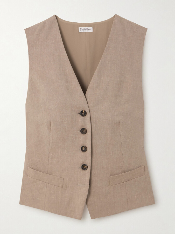 - Women's Fashion >Clothing >Jackets >Vests > Brunello Cucinelli Linen And Wool-blend Vest - Brown