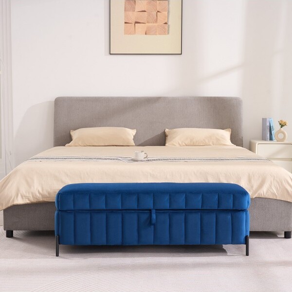 - Home & Living >Furniture >Living Room >Living Room Ottomans > Aortzio49.21\WWideVelvetUpholsteredStorageBench,Navy