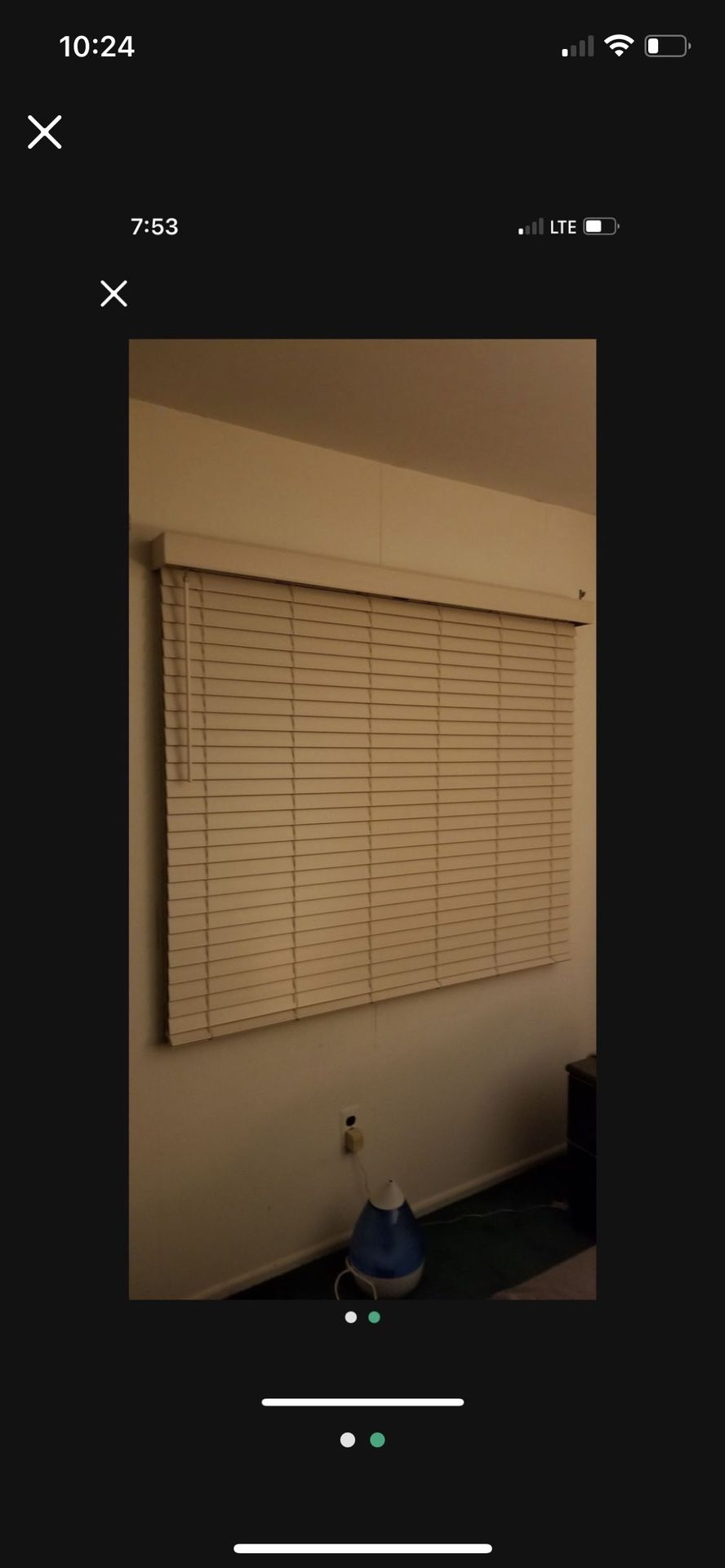 | Product Features | Two 2” faux wood blinds by Bali . Cream colored. Blinds are 2” x 59” . Valance is 48” x 58 & 1/2” . Blinds were not used , because they were too small for the window. Retails for $220 each. Local pickup only | ||