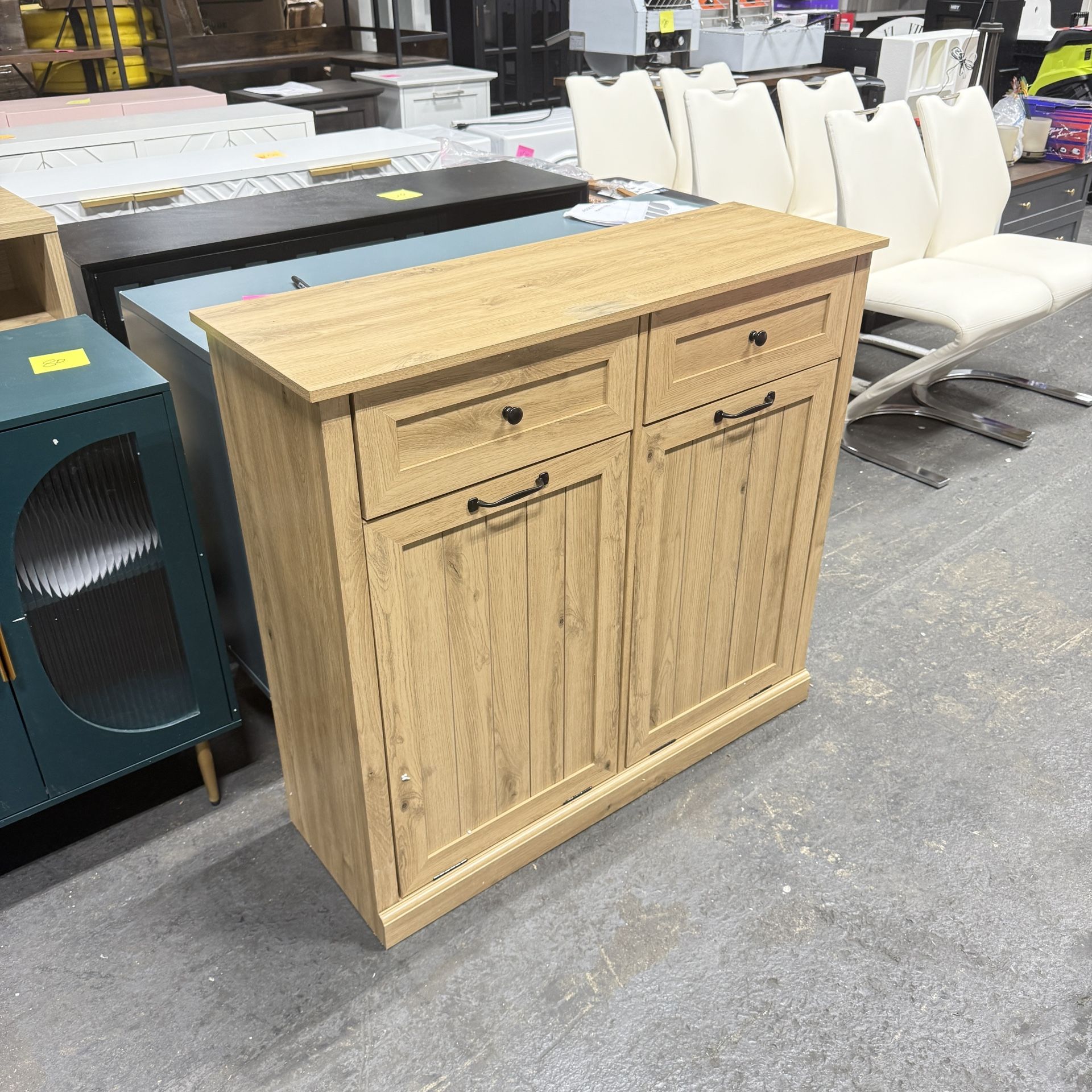 - Home & Garden >Household > Double Tilt Out Laundry Hamper Cabinet, 20 Gallon Farmhouse Trash Can Cabinet with Drawer, Hidden Wood Garbage Can Bin Cabinets with Laundry Storage B