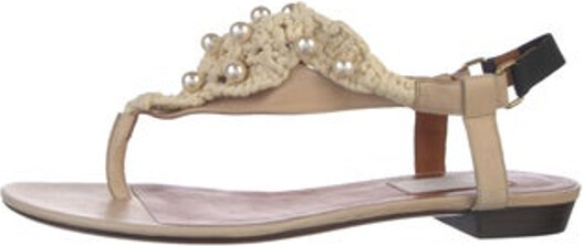 - Women's Fashion >Shoes >Sandals > Lanvin Leather T-Strap Sandals Neutrals Faux Pearl Accents Beaded Accents Includes Dust Bag Designer
