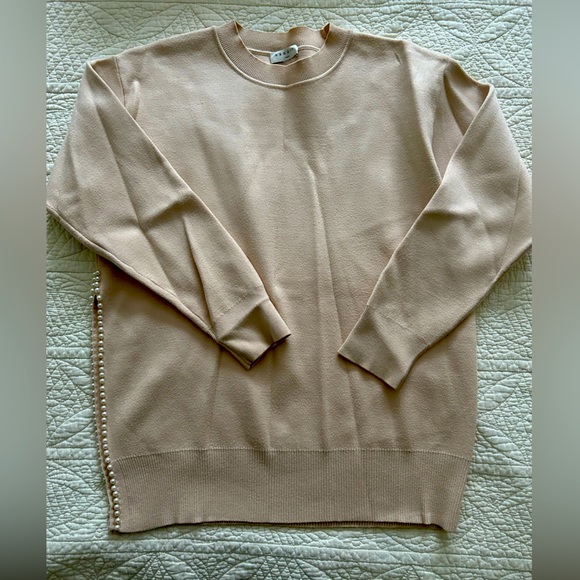 - Women >Sweaters >Crew & Scoop Necks > Sandro Pearl Trim Sweater - Sz 0 - Color Cream