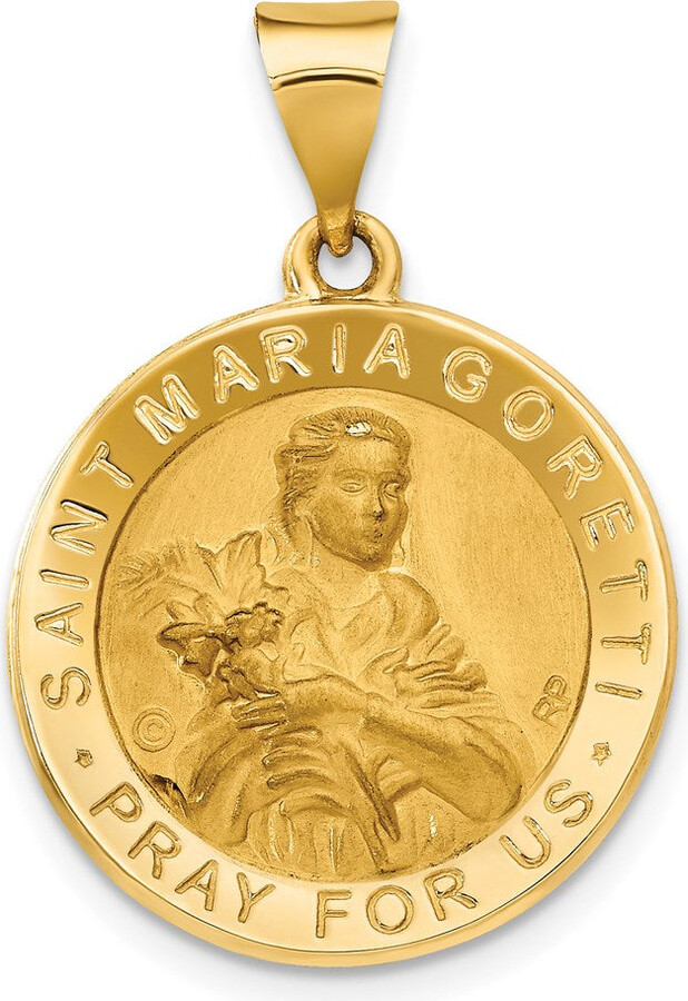 - Women's Fashion >Accessories >Jewelry >Necklaces > Diamond2Deal 14k Yellow Gold Polished Satin St. Maria Goretti Hollow Medal Pendant
