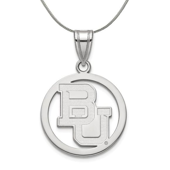 | Product Features | If you are a fan of Baylor University and the Bears then you need to show your school spirit with this Baylor University necklace. We are a certified college jewelry retailer and this authentic item is officially licensed. It is crafted from Sterling Silver and crafted by LogoArt in the USA. Includes an 18 Inch, 1.25mm sterling silver franco chain. | ||