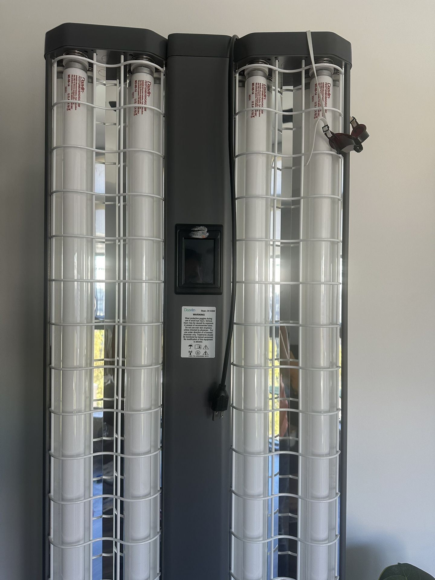 | Product Features | Daavlin series full body light therapy machine with 4 lamps. All lamps still work.A Daavlin light is a phototherapy device used to treat skin conditions like psoriasis, Lichen planus, vitiligo, and eczema, as well as newborn jaundice. It utilizes specific wavelengths of ultraviolet (UV) light to help manage these conditions, often offering a safe and effective alternative to other treatments. | ||
