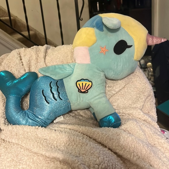 | Product Features | Tokidoki Mermicorno plush, Shelly, extra large, approx 16 inches, this one is very rare, made only in Australia, very good used condition | ||