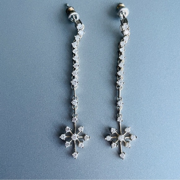 - Women >Jewelry >Earrings > Shiny Cubic Zirconia CZ Snowflake Flower Sterling Silver Dangle Drop Ear…