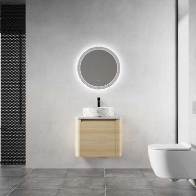 | Product Features | Details:This 24-inch wall-mounted bathroom vanity is a perfect blend of modern design and practical functionality. The soft-close door ensures a quiet and smooth operation, while the unique rounded edges add a touch of elegance and safety. Topped with a premium white stone slab and an artistic ceramic sink, it enhances both the aesthetic and functional aspects of your bathroom. The vanity is made from high-quality plywood with a scratch and water-resistant melamine surface, making it durable and easy to maintain. The 45° hidden handles and soft-closing hinges provide a seamless and comfortable experience. Ideal for small bathrooms or powder rooms, this vanity maximizes space and adds a sophisticated touch to any decor. Its eco-friendly, paint-free board construction also makes it a sustainable choice. Store all your essentials in the ample bottom storage, and enjoy a clutter-free and stylish bathroom. Ebern Designs | ||
