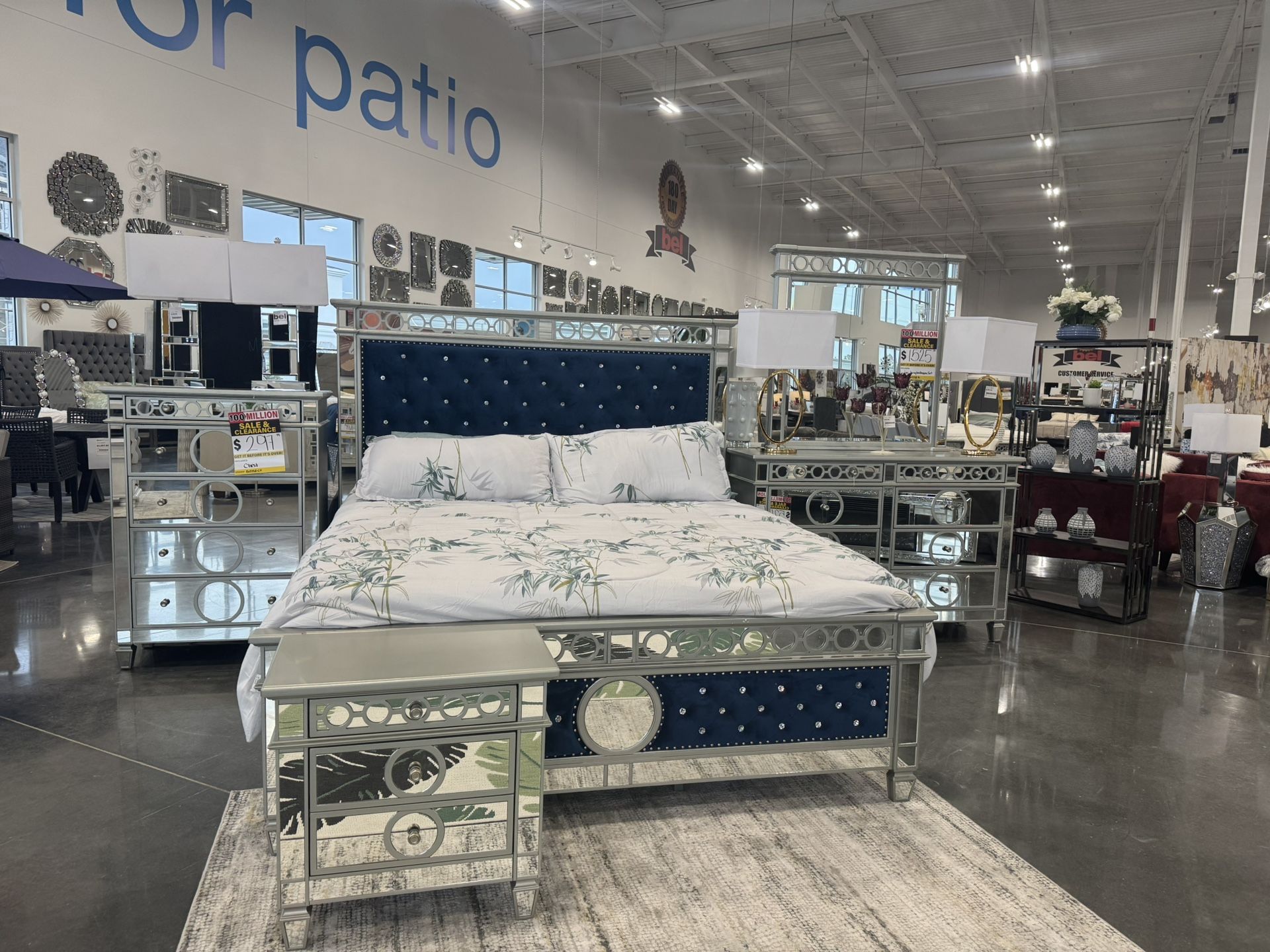 | Product Features | This provides a commanding presence in any room. Crafted with a glam look that is an ideal addition to any bedroom. Made of high-quality materials, it demonstrates delicate craftsmanship and has the perfect design to enhance your room. This is sure to complement your personal style and your favorite bedroom ensemble.Dimensions: 3Pc Queen Bed: 82'' W x 90'' LDresser: 56'' H x 44'' W x 21'' DMirror: 42'' H x 52'' W x 3'' DNightstand: 31'' H x 32'' W x 19'' D | ||