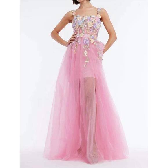 - Women >Dresses >Prom > NEW VIENNA PROM floral corset stunning overskirt prom gown in pink