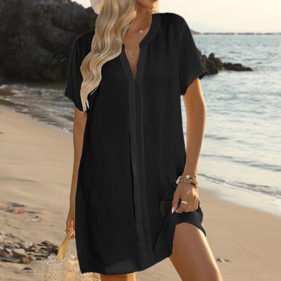 - Women >Dresses >Midi > Women's Casual V-Neck Shirt Dress Beach Dress