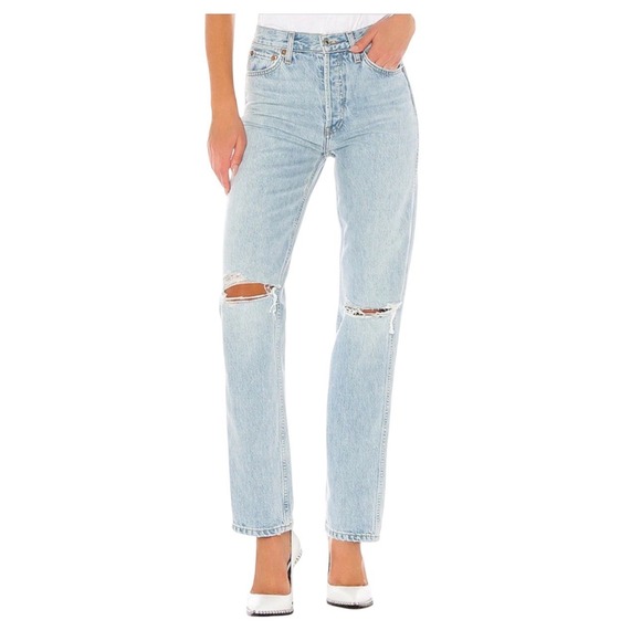 - Women >Jeans >Straight Leg > Re/Done x Levis 90s Relaxed Straight Jeans Womens 25 Light Blue Distressed