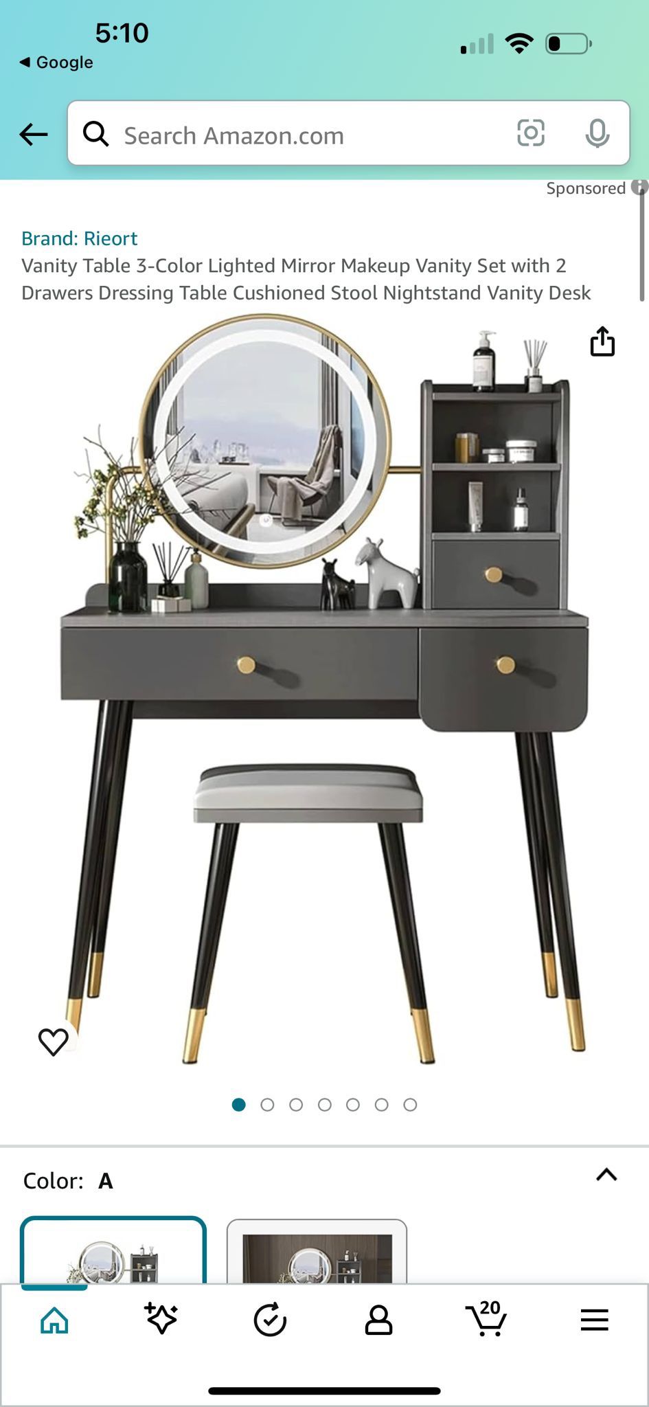 - Health & Beauty >Makeup & Cosmetics > Vanity Table 3 Color Lighted Mirror Makeup Vanity Set with 2 Drawers Dressing Table Cushioned Stool Nightstand Vanity Desk
