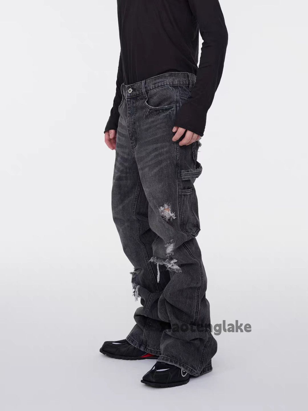 - Menswear >Bottoms >Denim > Custom distressed ripped carpenter bootcut jeans