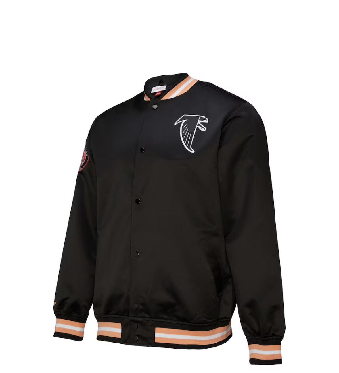- Sports & Outdoors >Fan shop >NFL > Men's Atlanta Falcons Mitchell & Ness Black Double Down Satin Full Snap Jacket