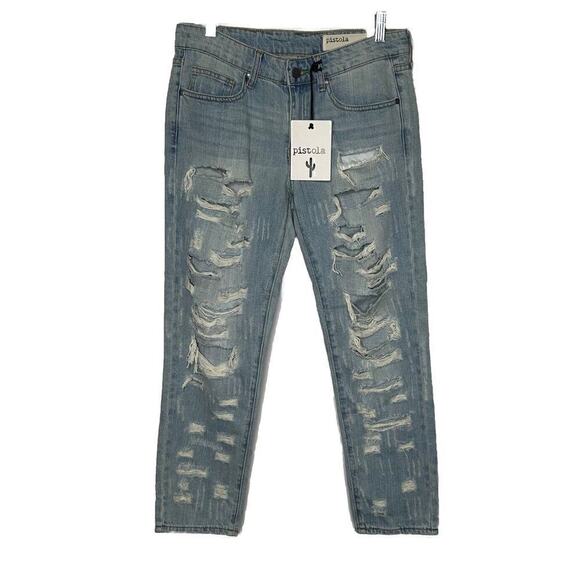 NWT Pistola Mid Rise Distressed Denim Jeans Slim Fit Women's Surf Side Size 27