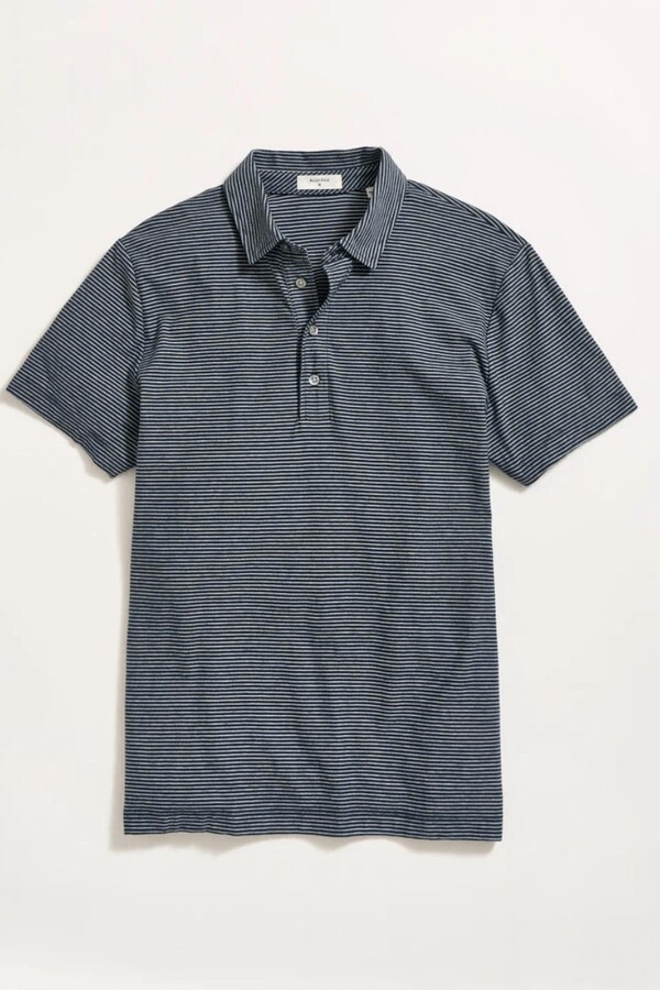 | Product Features | Details:Introducing Billy Reid's Men's Stripe Pensacola Polo Shirt in classic Carbon Blue/Silver, perfect for a minimalist spring wardrobe. This polo features short sleeves and a no-flop collar, crafted from 100% organic cotton for comfort and breathability. Made in Peru, it boasts a clean front with no pockets and a button closure. Care is easy with machine wash cold on a delicate cycle; simply turn inside out and tumble dry low or hang to dry. | ||