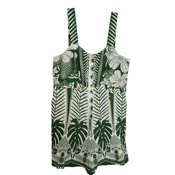 - Women >Pants & Jumpsuits >Jumpsuits & Rompers > Farm Rio Macaw Elegance Romper Green White Women's XL Palm Print NEW FLAWS