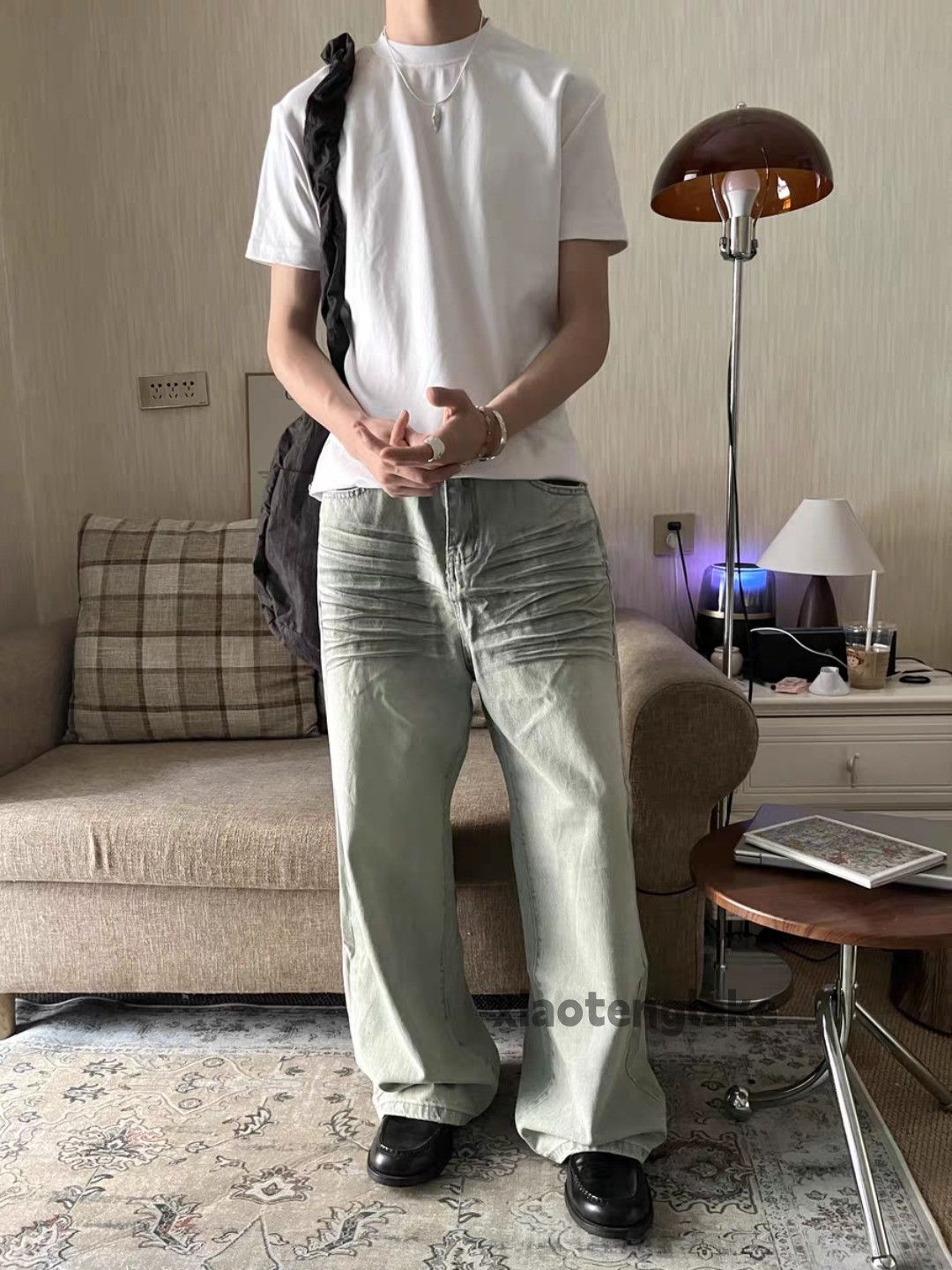 - Menswear >Bottoms >Denim > Washed faded punk grunge loose baggy stain jeans
