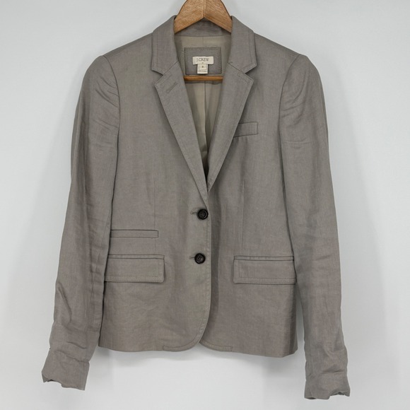 - Women >Jackets & Coats >Blazers & Suit Jackets > J. Crew Linen Blend Blazer Taupe Gray Single Breasted Womens Size 6 Work Classic