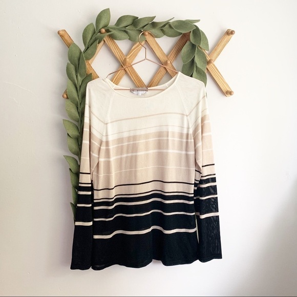 | Product Features | In good condition slightly sheer. Has a minor flaw as shown on the back of the sweater on the bottom, it’s a repaired snag. Material tag is removed Chest | 20” across Length | 29” | ||