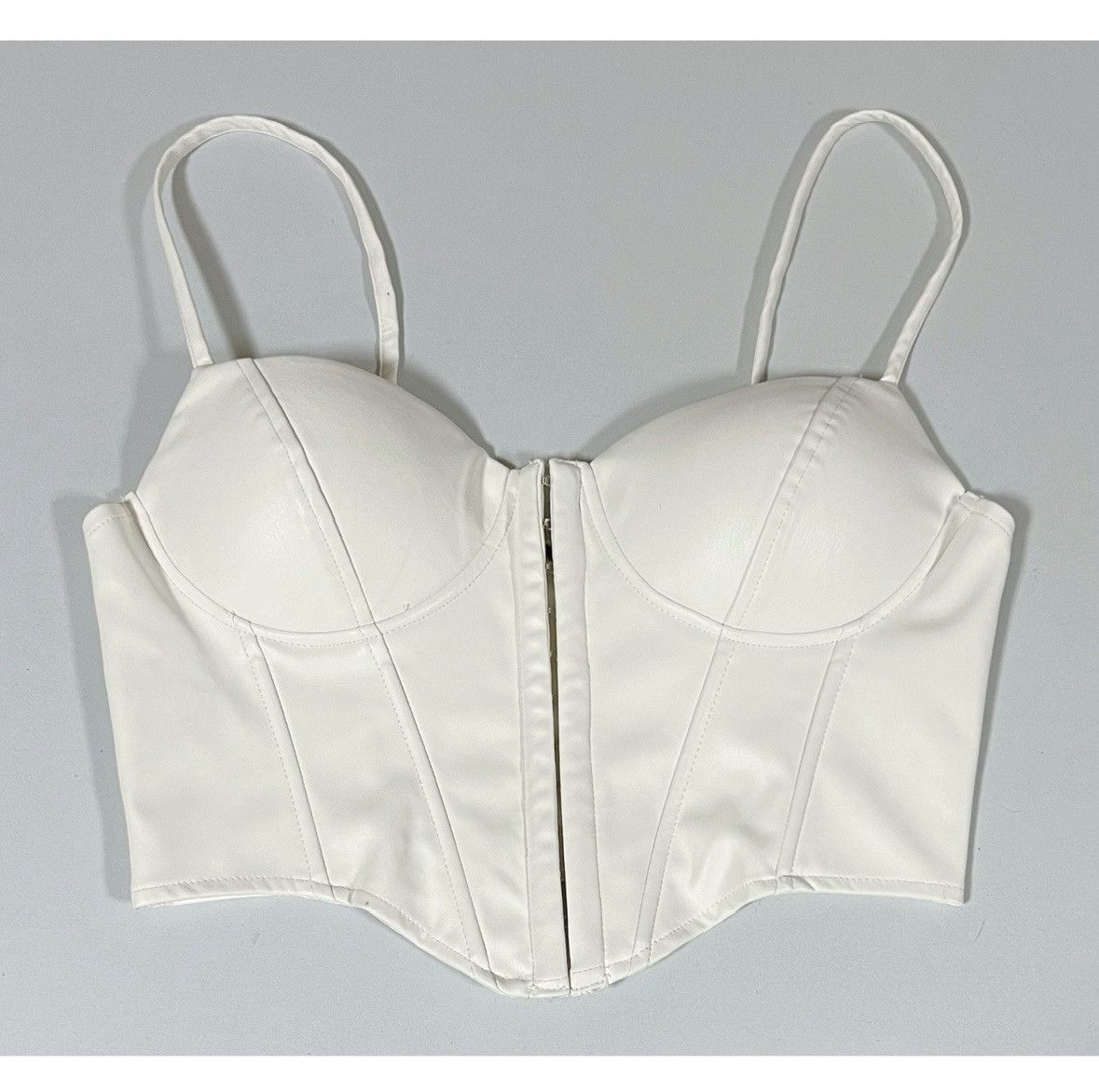 - Womenswear >Tops >Crop Tops > Windsor White Leather Corset Bustier Crop Top Shirt Size M 🤍