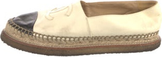 - Women's Fashion >Shoes >Espadrilles >Close Toe Espadrilles > Chanel Leather Espadrilles White Interlocking CC Logo Round-Toes Platform Designer