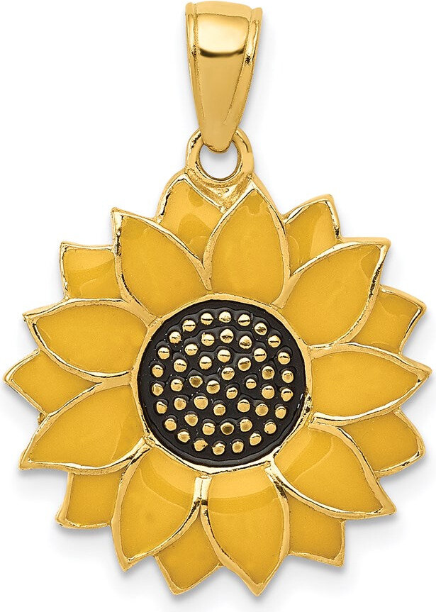 Diamond2Deal 14k Yellow Gold Enameled Yellow Sunflower Pendant