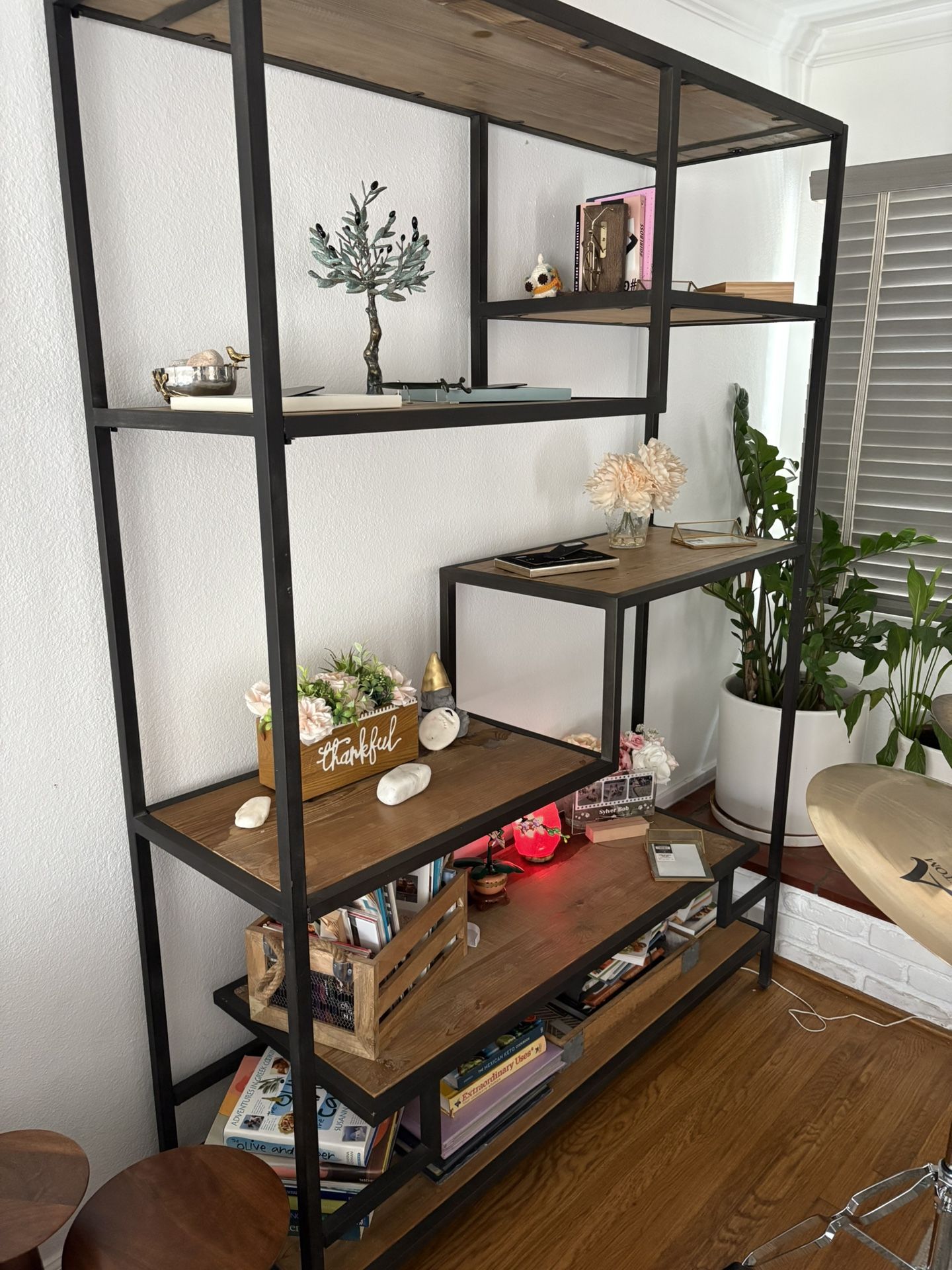 | Product Features | Beautiful open metal shelving unit. Perfect for displaying item as shown but downs t lose off a room like loses units. Had this for over 7 years. The wood shelves have minor issues. This can easily be corrected by restraining the shelves to your wood color choice or polishing with a wood polish. | ||