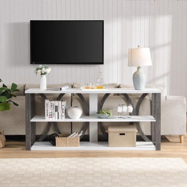 GDFStudioLuvina3-TierModernRectangularConsoleTable,White/Gray