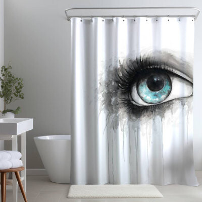 - Home & Living >Bathroom >Bath Linens >Shower Curtains > Begin Edition International Inc. Blue Eye Watercolor Shower Curtain | Figurative Bedroom Decor