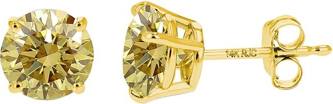 | Product Features | Details:14-karat yellow gold Lab-Grown Faceted Round-cut Prong-set Diamond = approximately 2.00 ct. tw.; color = Yellow; clarity = VS1 Post backs Please note: For earring pairs, ct. tw. refers to the total carat weight of all diamonds and/or gemstones for both earrings combined. It is customary to treat most gemstones to achieve enhanced color and durability. Some of these treatments may not be permanent, and may require special care. Includes Gift Box | ||