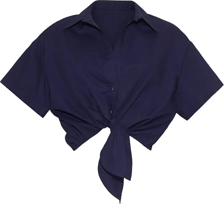 | Product Features | Details:navy blue poplin texture button fastening short sleeves tie front | ||