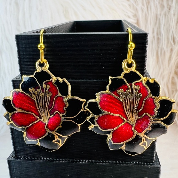 - Women >Jewelry >Earrings > Beautiful vintage goldtone, red and green flower weighted pierced earrings