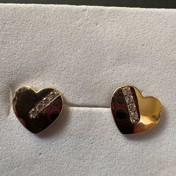 - Women >Jewelry >Earrings > Gold Heart Earrings with Crystal Accents, 14 k real solid gold.