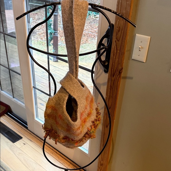 | Product Features | This unique handcrafted wool felt bag features vibrant orange accents, perfect for adding a touch of color to your decor. Its artisanal design makes it a standout piece.Check out all pics for measurements and details, | ||
