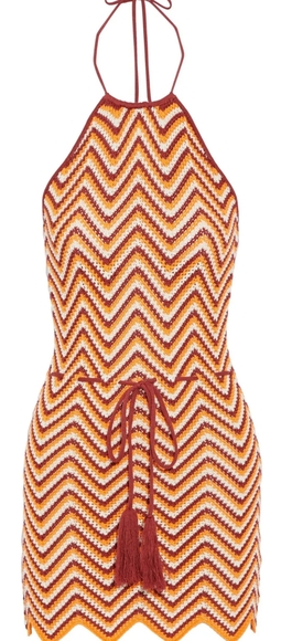 - Women >Dresses >Mini > RONNY KOBO Tasseled crochet-knit halterneck mini dress NWT