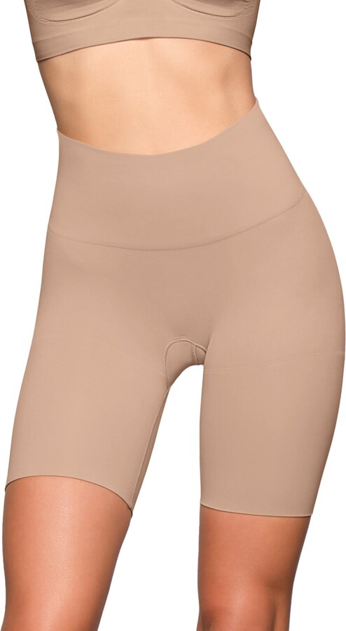 | Product Features | Details:Designed to lift and accentuate your butt, these mid-thigh shorts feature firm compression at the thighs and a ruched seam in back. Firm compression Open gusset 76% nylon, 24% spandex Machine wash, tumble dry Imported | ||