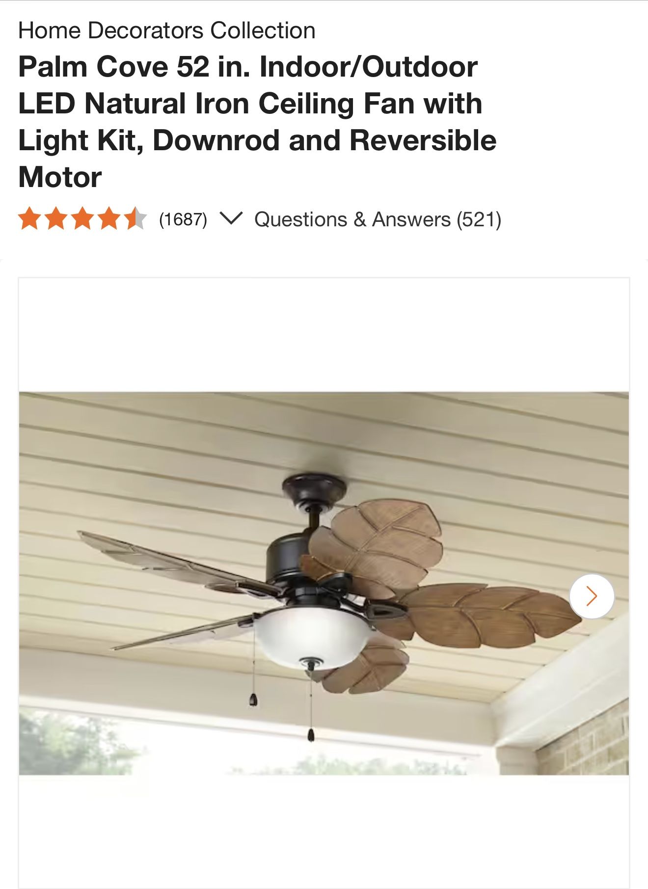 - Home & Garden >Lawn & Garden > Ceiling Fan Outdoor 52” Palm Cove