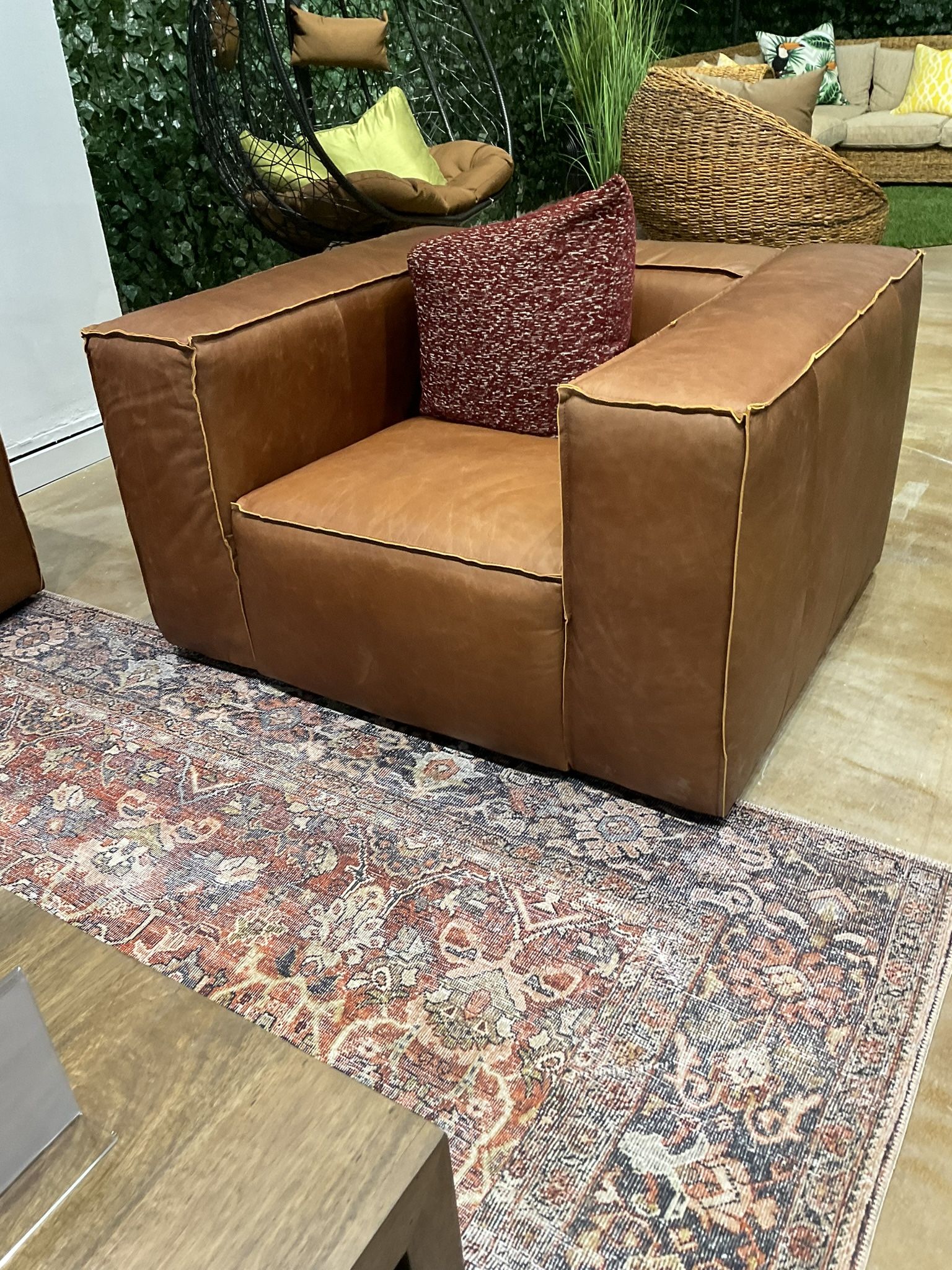 | Product Features | Selling floor sample Sofa and chair at discounted price Chair :- Dimensions: 46"w x 38.5"d x 27"h -16" Seat HeightUltra modern design for the true modernist.Features 100% top grain leather in cognac & onyx. Built on a solid engineered steel frame, the couch features track arms with tight seat and back cushions to create a streamlined silhouette. The genuine top-grain-leather upholstery is foam-filled for superior comfort. The exposed seams give this sofa a rustic look. Check out our matching chair to complete your look.DIMENSIONS: 100"W x 38.5"D x 27"H x 16" Seat Height | ||