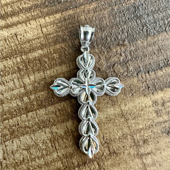 | Product Features | 14k white gold cross has two layers and a lot of intricate details on the front and back. Only worn a couple of times, no tags, in brand new condition. The pendent size is just under 1.5inch in length and just under 1inch in width. It’s a great addition to any outfit. Purchased from Zales Jewelers. | ||