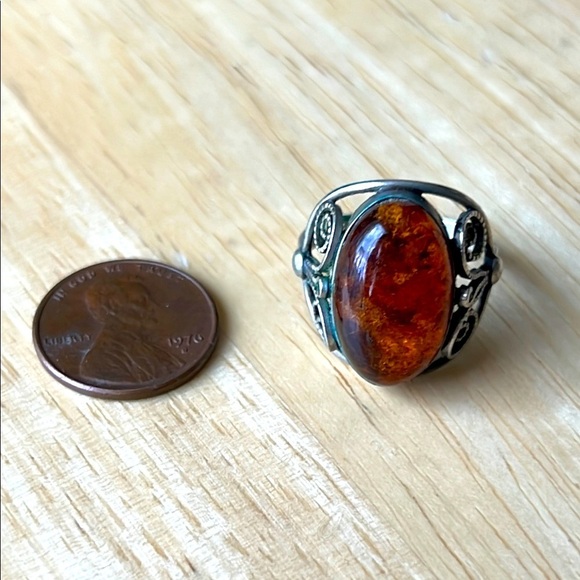 | Product Features | In excellent condition! This elegant ring features a stunning amber stone set in a beautifully crafted band. Perfect for adding a touch of sophistication to any outfit. | ||