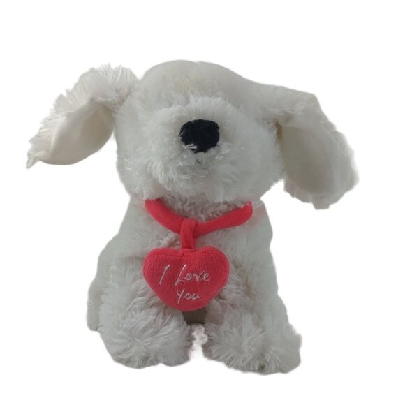 - Kids >Toys > Chrisha Playful White Puppy Dog Plush W/Red I Love You Heart Collar 11 Stuffed