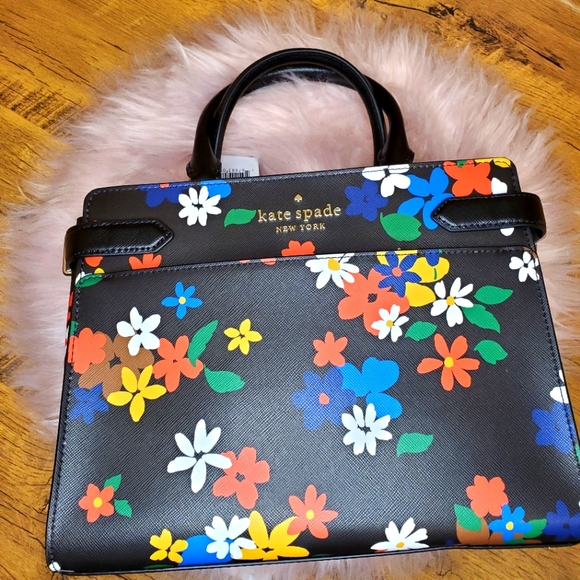 - Women >Bags >Satchels > NWT Kate spade handbag staci medium satchel in black sailing floral crossbody