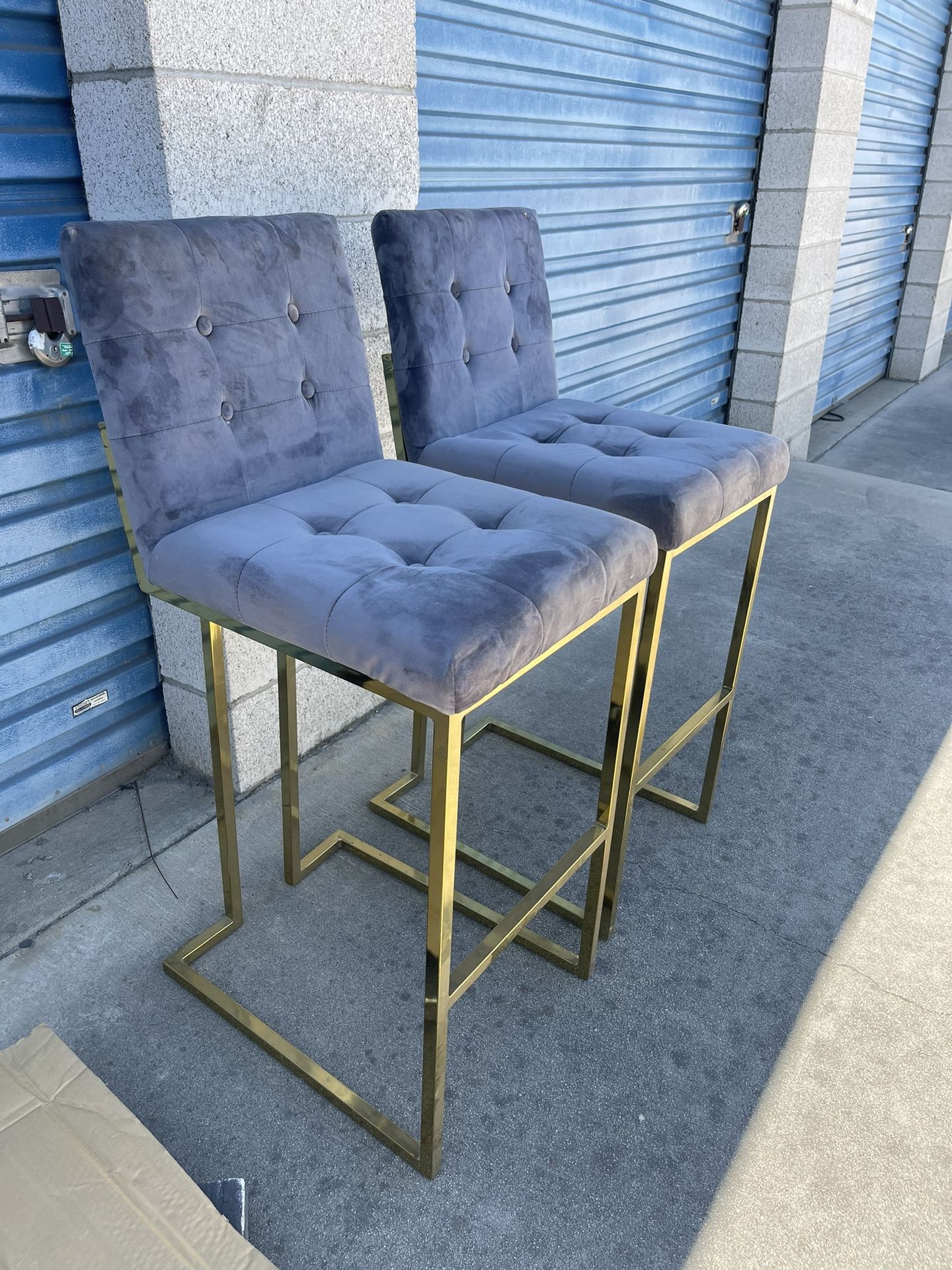 - Home & Garden >Furniture >Chairs > 29” Barstool Grey Velvet And Gold Stainless Steel