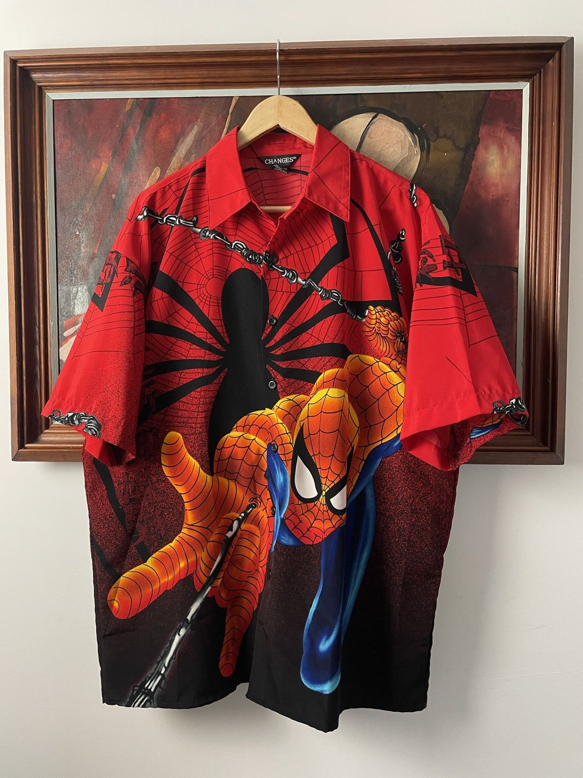 Vintage Y2k Spider-Man Button Up Shirt Avant Garde Japanese