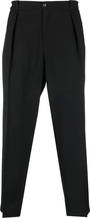 | Product Features | Details:black virgin wool tapered leg belt loops two rear welt pockets pleat detailing two side inset pockets front button and zip fastening | ||